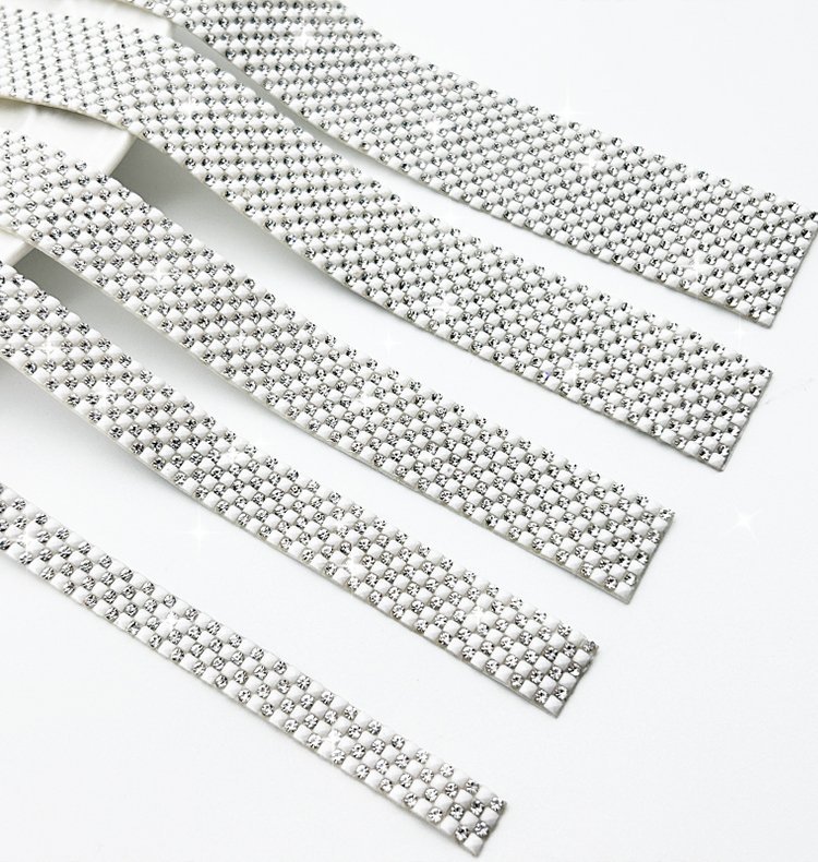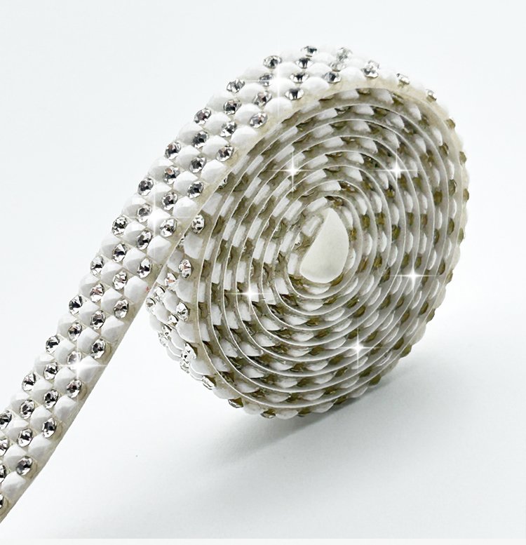 Simplify your crafting with our Self-Adhesive Rhinestone Strips! These strips feature perfectly aligned crystals pre-attached to a handy transfer tape, eliminating the tedious task of placing each stone individually. Just cut to your desired length, position it, press, and peel away the tape for instant, professional-looking sparkle.